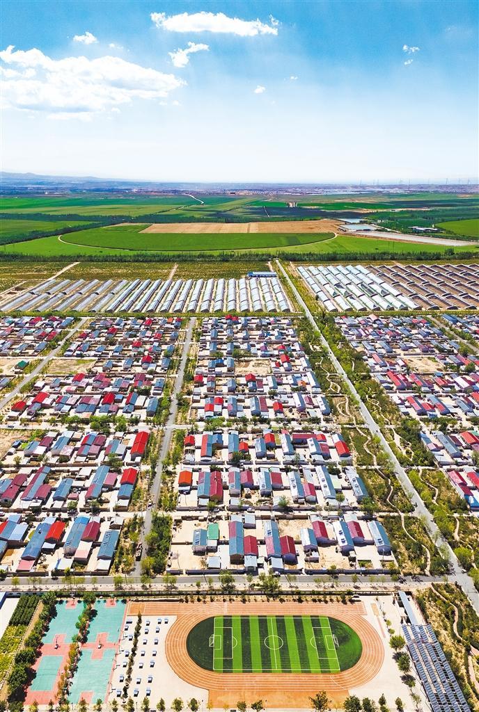 7月29日拍摄的吴忠市红寺堡区红寺堡镇弘德村。红寺堡区是全国最大的易地搬迁移民集中安置区,20多年来安置了超过20万来自西海固地区的移民群众。