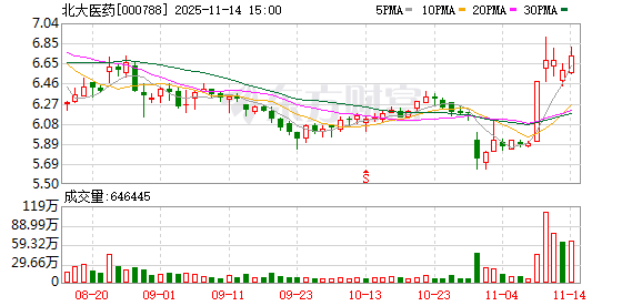 北大医药报收7.30元,日涨幅9.94%(涨停),二连板,换手率15.22%,今年以来的涨幅为22.90%。
