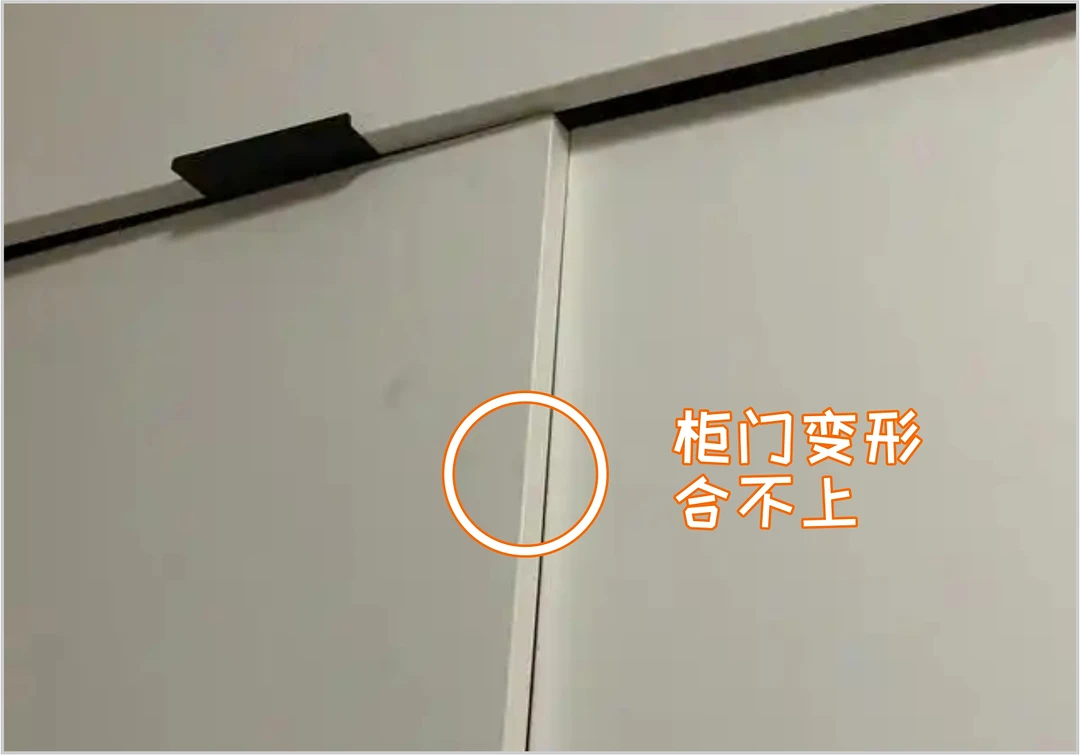 上海的赵女士为客厅定制了一门到顶衣柜,本想打造高级收纳空间,结果不到半年就彻底“塌房”:柜门歪斜无法闭合,柜体中部凹陷严重,连放置衣物都成了危险动作。普通板材密度不均、握钉力差,承重差,面对大尺寸设计根本无法支撑,让家变成危房。