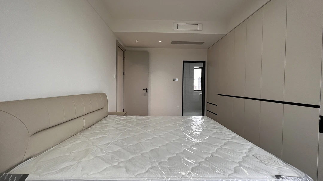 这是间简约风卧室,以白色为主色调,清爽干净。靠墙一排大衣柜,收纳空间充足。大床搭配柔软床头,舒适自在。整体布局规整,动线流畅,营造出宁静放松氛围。适合喜欢简洁、追求生活品质的人,能让人在忙碌一天后,拥有惬意的休憩之所