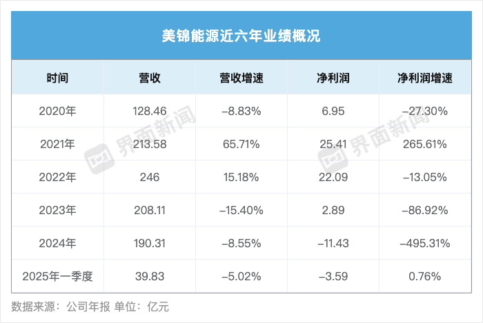界面新闻梳理美锦能源近六年财报,公司业绩呈现明显起伏。